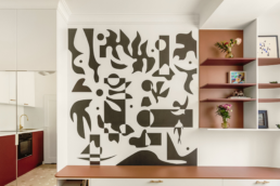 “I wanted to take the messy, beautiful energy of the coast and ‘spell it out’ on these walls. By stripping the sea down to its basic shapes ,its syllables,the murals turn a quiet apartment into a space that feels like it’s constantly breathing and moving, even when everything is still.”